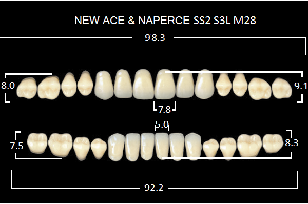 Зубы акриловые двухслойные, полный гарнитур, 28шт. Gloria цвет. A1, Фронтальные-SS2, боковые-М28