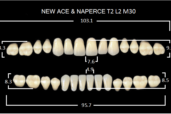 Зубы акриловые двухслойные, полный гарнитур, 28шт. Gloria цвет. C3, Фронтальные-T3, боковые-М32