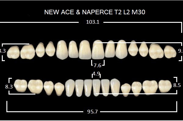 Зубы акриловые двухслойные, полный гарнитур, 28шт. Gloria цвет. A1, Фронтальные-T2, боковые-М30