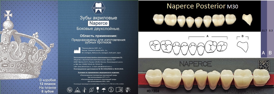 Зубы акриловые двухслойные,боковые нижние, 8шт. Naperce Posterior цвет. A2, фасон M32 310,00 руб.
