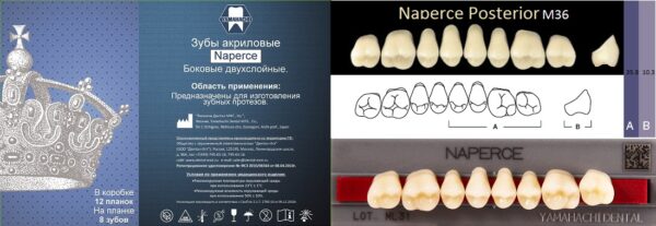 Зубы акриловые двухслойные,боковые верхние, 8шт. Naperce Posterior цвет. B2, фасон M36